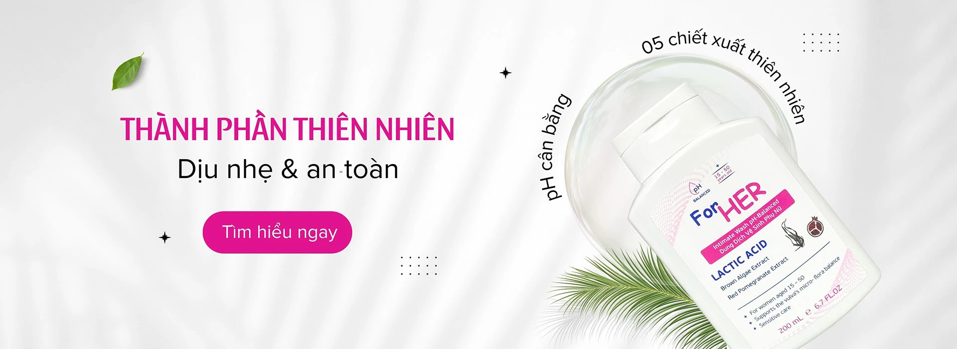 Nước sạch không thể duy trì độ pH tự nhiên (3.8–4.5) của vùng kín. Forher giúp cân bằng pH, ức chế vi khuẩn gây mùi, đồng thời nuôi dưỡng làn da nhạy cảm nhờ 5 chiết xuất thiên nhiên.